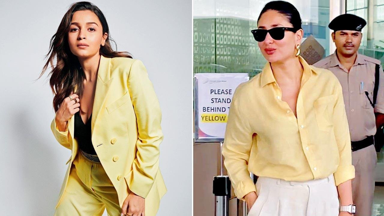 For formal wear, try a butter yellow ensemble like Alia Bhatt (right). For casual wear, pair a yellow shirt with white pants like Kareena Kapoor Khan.