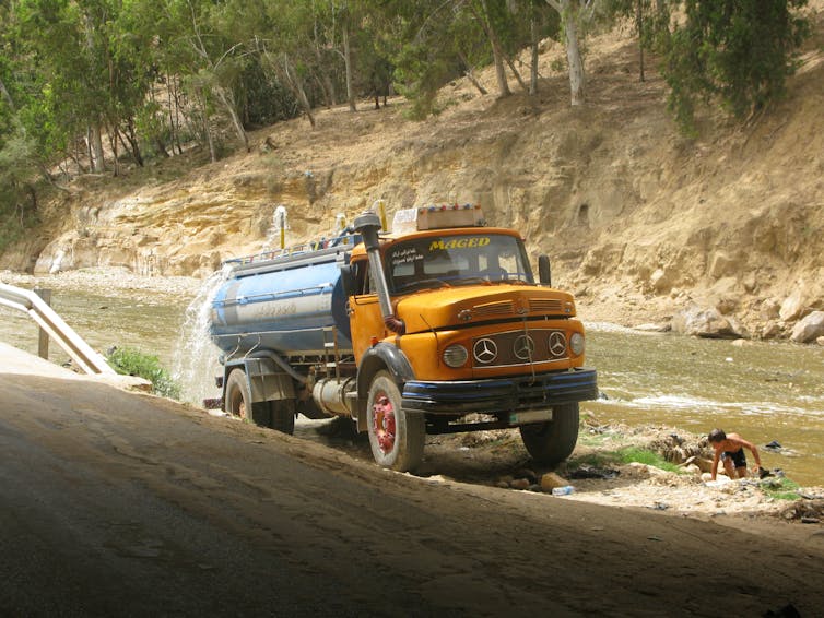 But these trucks aren’t usually dispatched by local water utilities. Instead, they’re run by private operators licensed to sell drinking water, and increasingly, unlicensed operators who source water from private wells. This illustrates the rise of illicit water markets in the Middle East as the climate crisis makes droughts more severe and frequent.