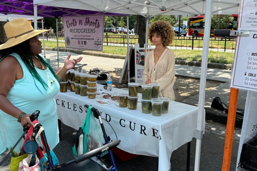 “The things I buy at the farmers market always seem to be fresher, more local, probably from a farmer within 100 miles of here,” Washington, D.C. resident Liz Herman said Saturday as she bought fresh fruits and vegetables at the farmers market in Washington, D.C.’s Mount Vernon neighborhood.