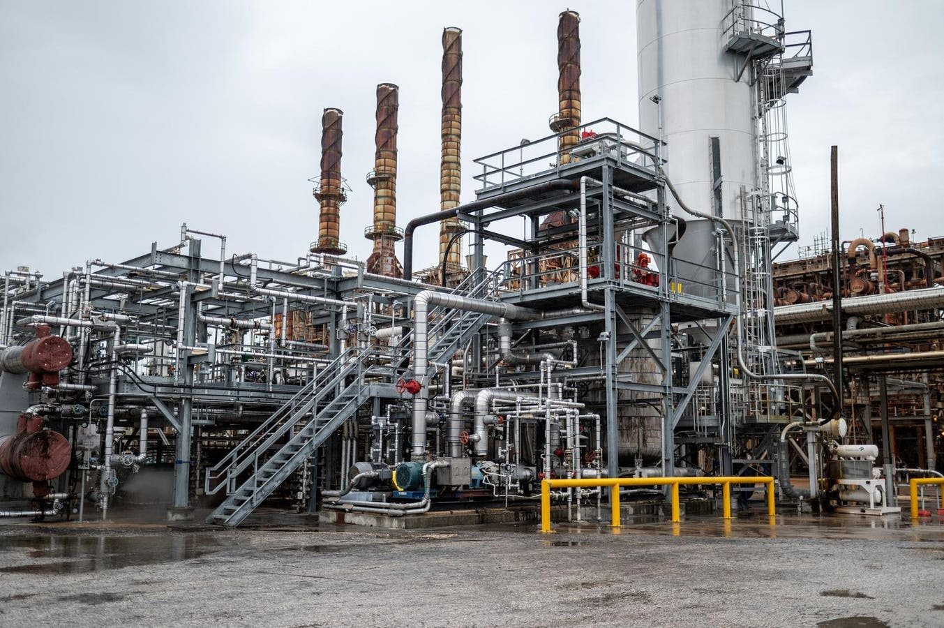 ExxonMobil’s chemical recycling plant in Baytown, Texas, on Oct. 11, 2023. ExxonMobil facility … [+] It is one of only 11 chemical recycling plants built in the U.S., according to an October report from Beyond Plastics. (Photo: Sergio Flores/AFP) (Photo: Sergio Flores/AFP via Getty Images)