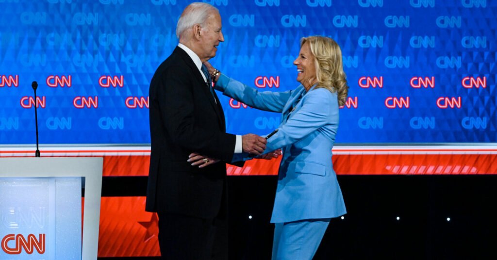 Dr. Biden then held hands with the president as he stalked down the stairs. The moment quickly went viral: At a campaign viewing party the Bidens attended immediately after the debate, she praised her husband’s performance. But other critics saw her as virtually patting him on the head for simply making it through the debate.
