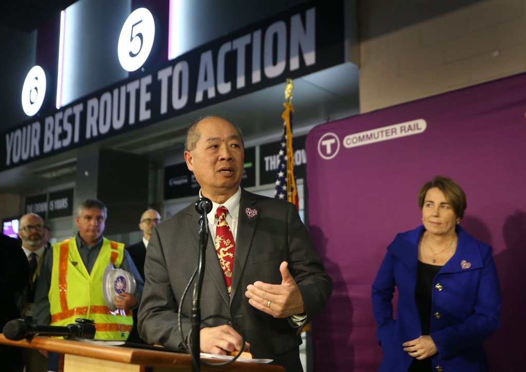 MBTA GM Phil Eng, who appeared at North Station with Gov. Maura Healey in February, said he has seen changes in the way the MBTA does business in his first year in office. (Nancy Lane/Boston Herald)