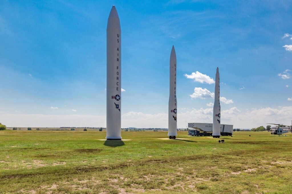 A missile stands near Gate 1 at Francis E. Warren Air Force Base in Cheyenne, Wyoming. (Photo by Ron … [+] Buskirk/UCG/Universal Images Group via Getty Images