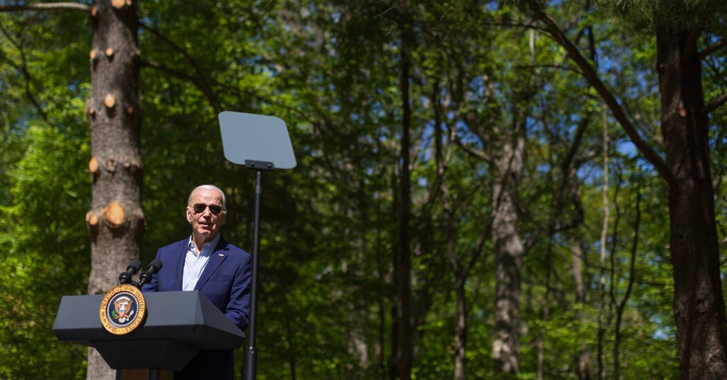 President Biden on Monday announced $7 billion in subsidies for solar power projects, seeking to draw a contrast with Republicans who want to roll back climate change policy.