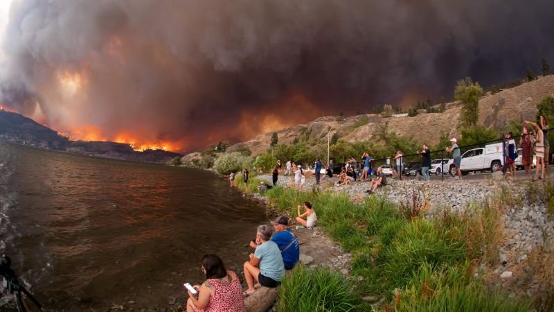 A resident watches the McDougall Creek Fire from Kelowna on August 17, 2023 in West Kelowna, British Columbia, Canada.