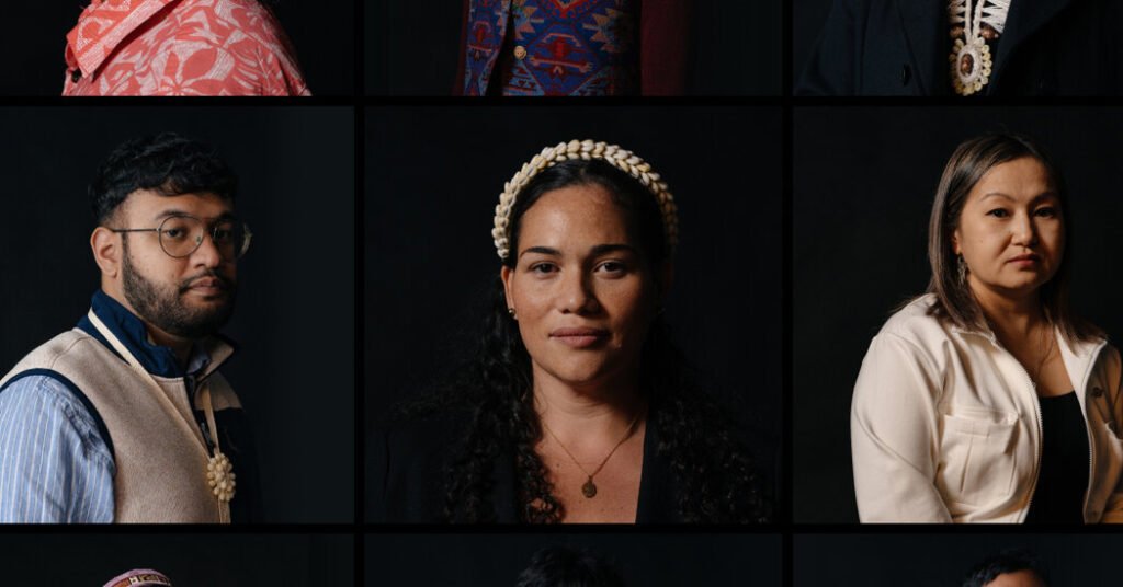 Photographs by Ike Edeani. Top grid of testing survivors and descendants: Tamatoa Tepuhiarii, Aigerim Yelgeldy, Adiya Akhmer, Raygon Jacklick, Benetick Kabua Maddison, Karina Lester, Hinamoeura Morgant-Cross, Kairo Langrus, Aigerim Seitenova, Ereti Tekabaia, Matthew John and Mere Tuilau. Tamatoa Tepuhiarii, Adiya Akhmer, Raygon Jacklick, Benetick Kabua Maddison, Hinamoeura Morgant-Cross, Aigerim Yelgeldy, Aigerim Seitenova, Matthew John, Kairo Langrus, Karina Lester, Ereti Tekabaia and Mere Tuilau