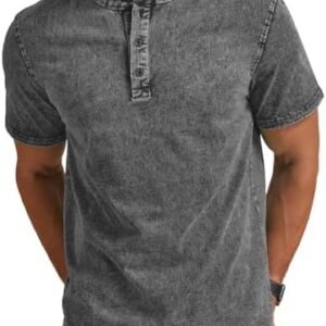 Aimeilgot Mens Distressed Henley Shirts Casual Washed T-Shirts Retro Short Sleeve Tee Cotton Shirts