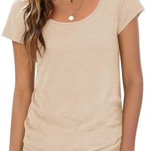 Sherosa Women’s T-Shirts Long/Short Sleeve Scoop Neck Casual Tops Soft Solid Basic Tee Blouses