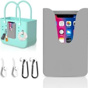 Silicone Phone Holder Compatible with Bogg Bag, with 4Pcs Hooks Set Accessories Phone Case Insert Accessories for Bog Bags Phone Holder Attachment for Beach Tote Bags, Fits All Cell Phones (Grey)