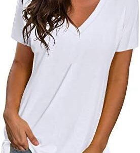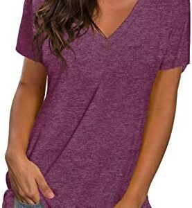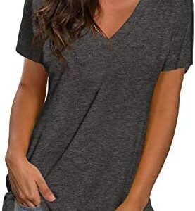 Sipaya Womens T Shirts Basic V Neck Tee Loose Fitting Casual Short Sleeve Tops