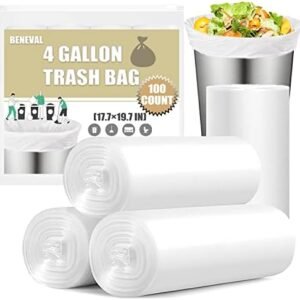 Small Trash Bags 4 Gallon – 100 Count 4 Gallon Trash Bag, Small Garbage Bags for Office Bedroom Bathroom Trash Bags, White 4 Gal Small Trash Can Liners