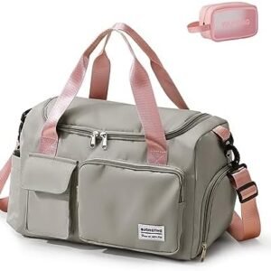Small Gym Bag for Women, Waterproof Duffle Bag Carry On Weekender Bag with Shoe Compartment & Wet Pocket, Gym Tote Bag for Travel, Workout, Sport