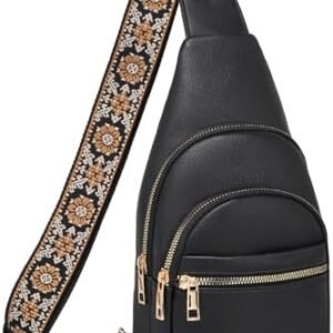 Small Sling Bag for Women, Vegan Leather Fanny Pack Crossbody Bags for Women, Chest Bag With Guitar Strap