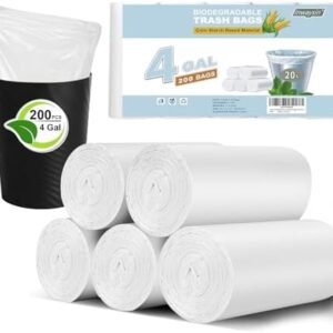 Small Trash Bags Bathroom Garbage Bags 4 Gallon, Inwaysin 15-20 Liter White Mini Trash Bags, Office Waste Basket Liners Compostable Plant Based Bin Bags, 200 Count