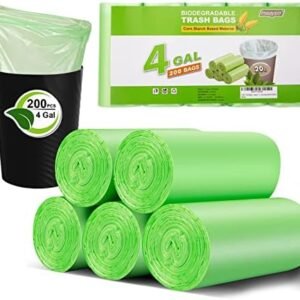 Small Trash Bags 4-6 Gallon, Inwaysin 200 Count Biodegradable Trash Bags 4 Gallon, Extra Strong Small Garbage Bags Unscented, Size Expanded, Green, for Bathroom Bedroom Office Kitchen Trash Can