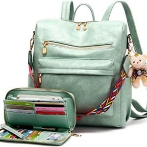 Soperwillton Women Backpack Purse Multipurpose Design Handbags Shoulder Bag PU Leather Travel bag Backpack Set 2pcs