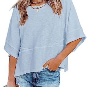 Sovelen Women’s Summer Casual Crewneck Batwing Half Sleeve T-Shirts Solid Color Loose Fit Cute Basic Flowy Tops Tees Blouses