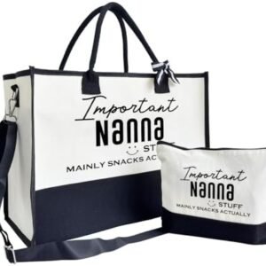 SUSZDOU Important Nanna Bag, Nanna Stuff Tote Bag, Canvas Beach Bag, Canvas Tote Bag for Women, Cotton Canvas Bag Gift for Nanna, Mother’s Day Gift for Her Grandma Nanna, Funny Gifts for Nanna