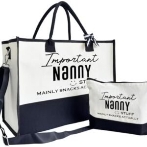 SUSZDOU Important Nanny Bag, Nanny Stuff Tote Bag, Canvas Beach Bag, Canvas Tote Bag for Women, Cotton Canvas Bag Gift for Nanny, Mother’s Day Gift for Her Grandma Nanny, Funny Gifts for Nanny