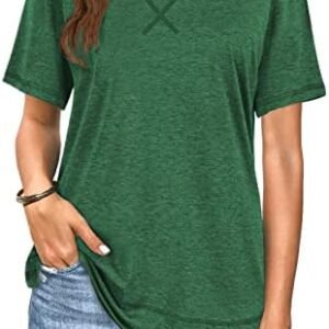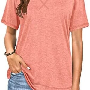 Summer Tops for Women Short Sleeve Crewneck Tshirts Side Split Loose Fit Tunic Shirts