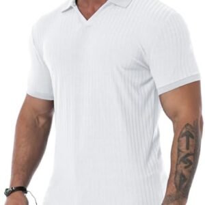 Askdeer Men’s Muscle V Neck Polo Shirts Slim Fit Shirt Short Sleeve Golf T-Shirts Ribbed Knit Soft Casual Tee