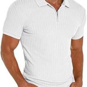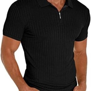 Askdeer Zipper Polo Shirts for Men Slim Fit Shirts Casual Stretch Ribbed Knit Zip Shirt