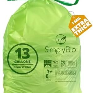 13 Gallon Compostable Trash Bags Drawstring, Heavy Duty Extra Thick 1 Mil, 49.21 Liter, 30 Bags, Tall Kitchen Food Scrap Waste Bag, ASTM D6400, US BPI and OK Compost Home Certified