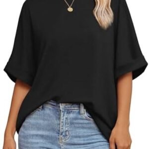 ATHMILE Womens Oversized T Shirts Loose Fit Crewneck Short Sleeve Tops Summer Casual Blouse Y2K 2024 Basic Tee