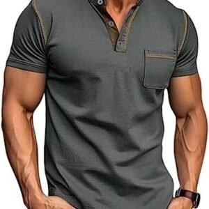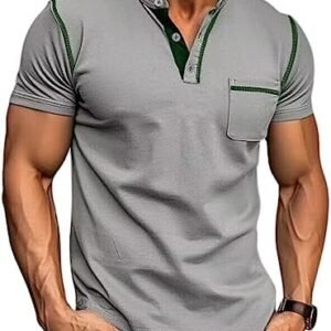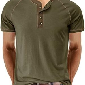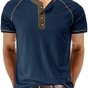 Aulemen Men’s Henley Shirts Short Sleeve Casual Lightweight Slim Fit Basic Button T-Shirt with Pocket