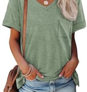 ATHMILE Womens T Shirts 2024 Short Sleeve V-Neck Shirts Cute Fit Summer Casual Tee Tops S-XXL