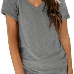 AUTOMET T Shirts Short Sleeve V Neck Tees for Women Fashion Tops Trendy Lightweight Soft Casual Summer Outfits Clothes 2024