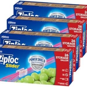 Ziploc Gallon Food Storage Slider Bags, Power Shield Technology for More Durability, 26 Count (Pack of 4)