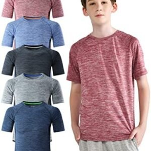5 Pack Boys Athletic Shirts, Youth Activewear Dry Fit Tshirts for Kids, Short Sleeve Tees, Bulk Athletic Performance Clothing