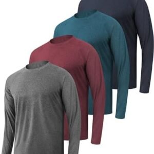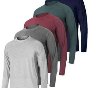 4 Pack Men’s Shirts Long Sleeve Workout T Shirts UPF 50+ Sun Protection Rash Guard Dry Fit Athletic Fishing Running Tee Tops