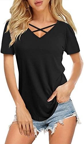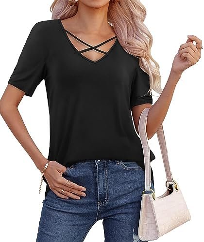 DittyandVibe Womens Criss Cross Tops Casual Loose Cute Tunic Tee