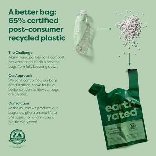 A BETTER POOP BAG: We make our dog poop bags with 65% certified post-consumer recycled plastic, giving a second life to over 5 million pounds of landfill-bound plastic a year.