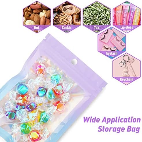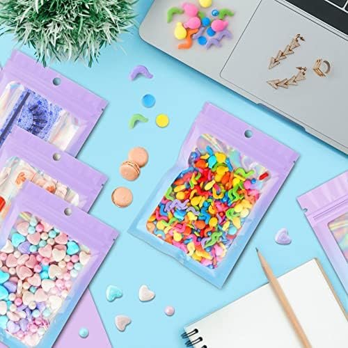 Funfery 100 Pack Gradient Holographic Bags,Mylar Resealable Bags with Zipper,Clear Window Packaging Pouch,Smell Proof Plastic Bags for Food Storage,Sample Jewelry Baggies(2.7×3.9In,Purple Blue)