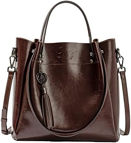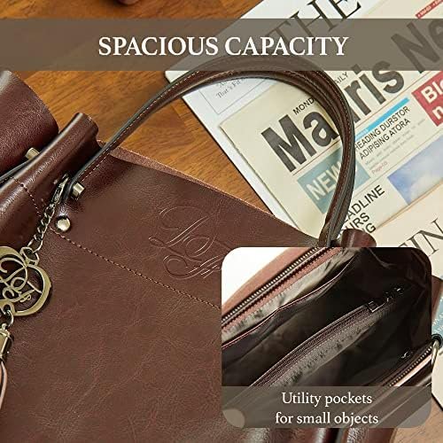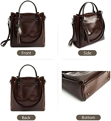 Genuine Leather Tote Bag for Women Shoulder Bag with Zipper Closure