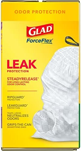 GLAD TRASH BAGS PROTECTION SERIES WITH FORCEFLEX STRENGTH: Glad Tall Kitchen Drawstring Trash Bags with stretchable strength keep your trash can smelling fresh with a Gain Lavender scent; Packaging may vary