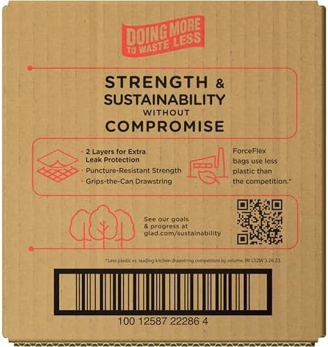 FORCEFLEX TECHNOLOGY: Glad’s patented dual-layer protection is designed to give extra flex as it expands around sharp edges and heavy loads while resisting punctures, rips and tears