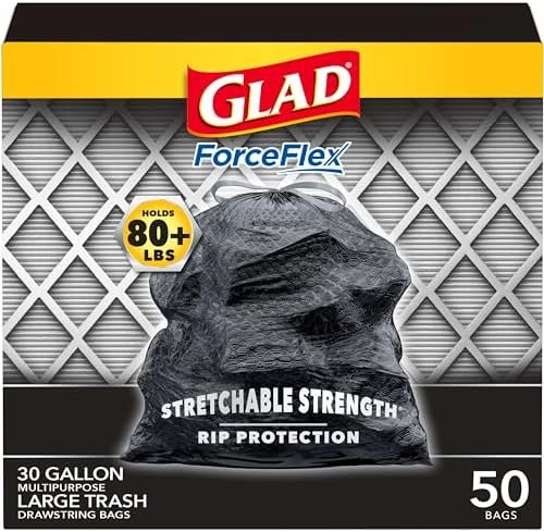 GLAD TRASH BAGS WITH FORCEFLEXPLUS STRENGTH: Handle the toughest jobs around the home, yard or office with the versatile 30 gallon garbage bag