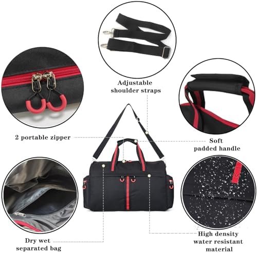 Roomy & Multi Functional Pockets – Small duffle bag has plenty of storage with 7 pockets, including 1 main compartment with a two-way zipper to keep all your important belongings, 2 front pockets and 1 Inner side wet pocket, 2 side pockets, 2 lnner pockets. Helps the management of portable luggage, quickly find items you need