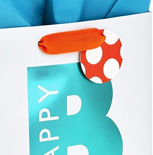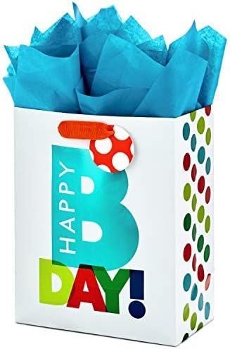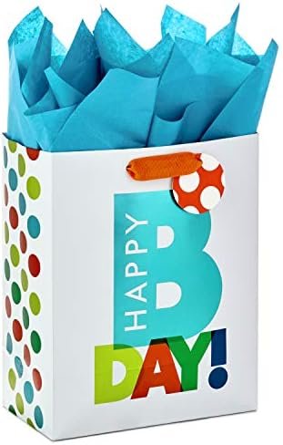 This bright and festive birthday gift bag features colorful lettering that reads “Happy BDay” on a white background with polka-dot pattern on the sides. An orange ribbon handle, attached polka-dot gift tag, and 2 sheets of turquoise tissue paper make wrapping quick and easy. Medium gift bag measures 7.75″ x 9.63″ x 4.34″. The Hallmark brand is widely recognized as the very best for greeting cards, gift wrap, and more. For more than 100 years, Hallmark has been helping its customers make everyday moments more beautiful and celebrations more joyful.
