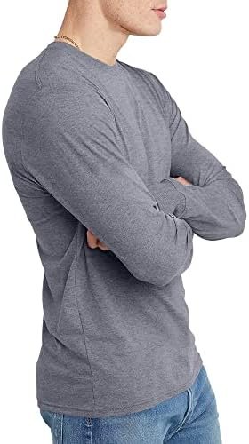 Soft and lightweight, this men’s long-sleeve tee is made with a portion of recycled polyester, so you can feel good about looking good. Designed to combine comfort and style, we’re proud to call this men’s long-sleeve t-shirt one of our Hanes® Originals. A set-in ribbed crew neckline adds to the classic style of this must-have men’s tee. Layer it or wear it alone for an easy, casual-cool look.