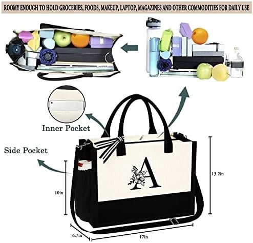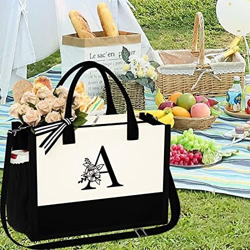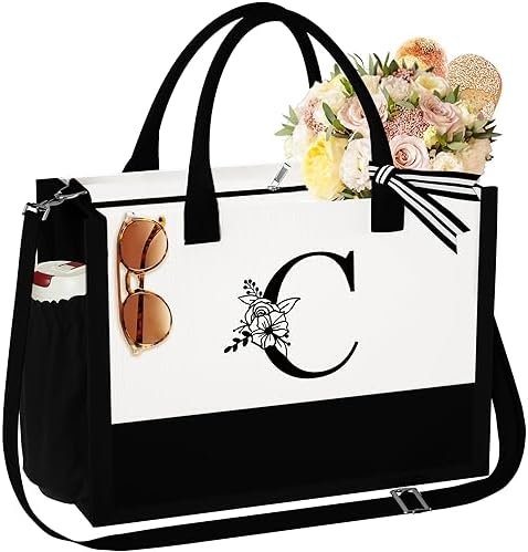 Initial Canvas Beach Tote Bag with Zipper Adjustable Strap Tote Bag Bride Gifts Mothers Day Birthday Gifts for Women