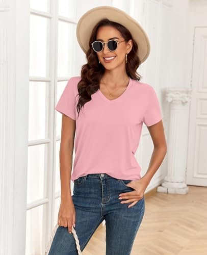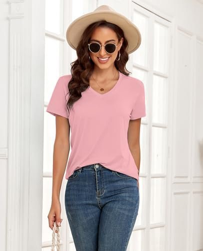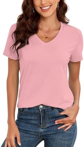 KevaMolly V Neck Basic T Shirts for Women UPF 50+ 2024 Solid Loose Fit Tee