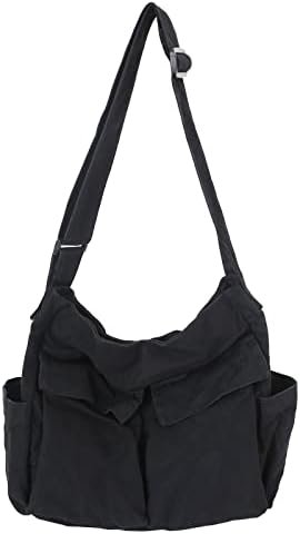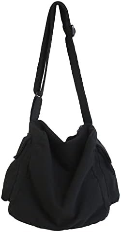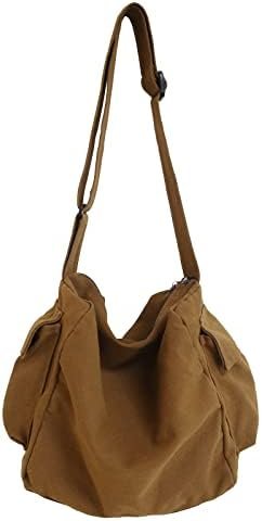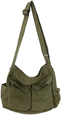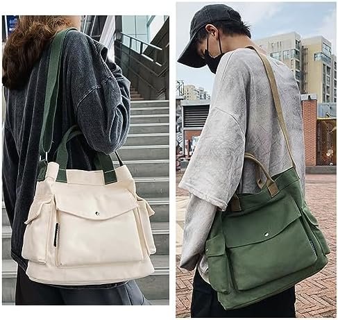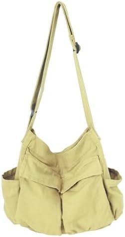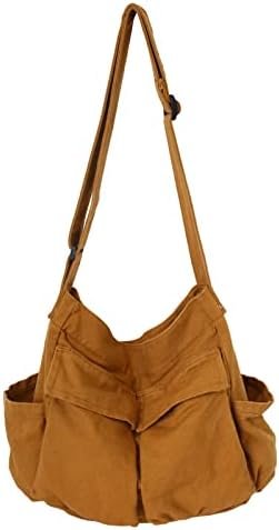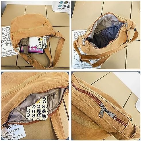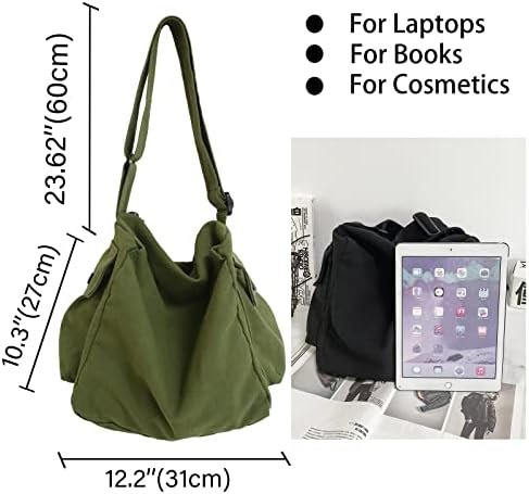 KlaOYer Canvas Messenger Bag Large Hobo Bag Crossbody Shoulder Bag Tote Bag with Pocket for Women and Men