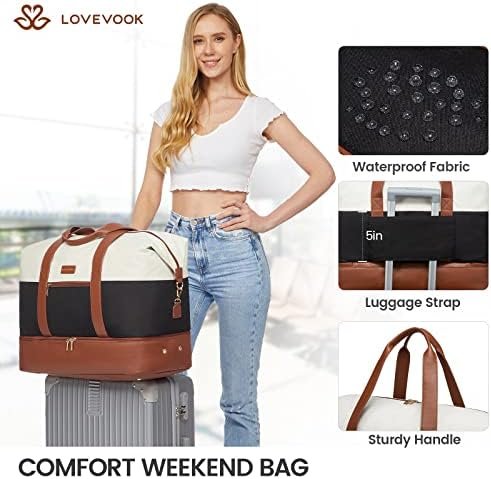 LOVEVOOK Weekender Bag, Large Travel Duffel Bag for Women with 2 Packing Cubes, Carry on Overnight Bag with Shoe Compartment, Mom Hospital Bags for Labor and Delivery