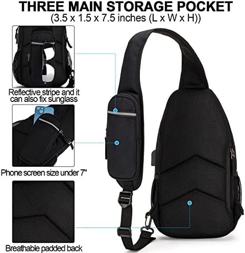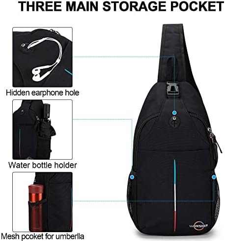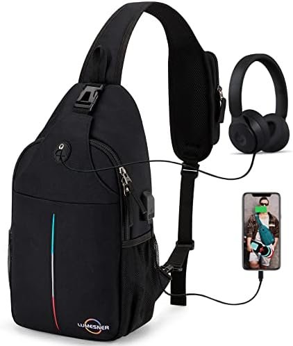 Lumesner Sling Bag Crossbody Backpack with USB Charging Port,Hiking Daypack Shoulder Bag Chest Bag for Hiking Walking Travel