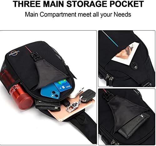 💎【Hidden Earphone Hole&USB Charge Port】There is a hidden earphone hole on the front, providing easy access to your earphones, you can enjoy music anytime and anywhere. And the sling bag comes with a USB charging port great convenience for charging your electronic devices via connecting your own power bank (power bank not included), you can connect your phone to and easily charge during outdoors and travel, Very handy and fashionable, Hook up your phone and be on the go.